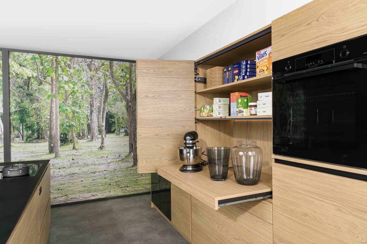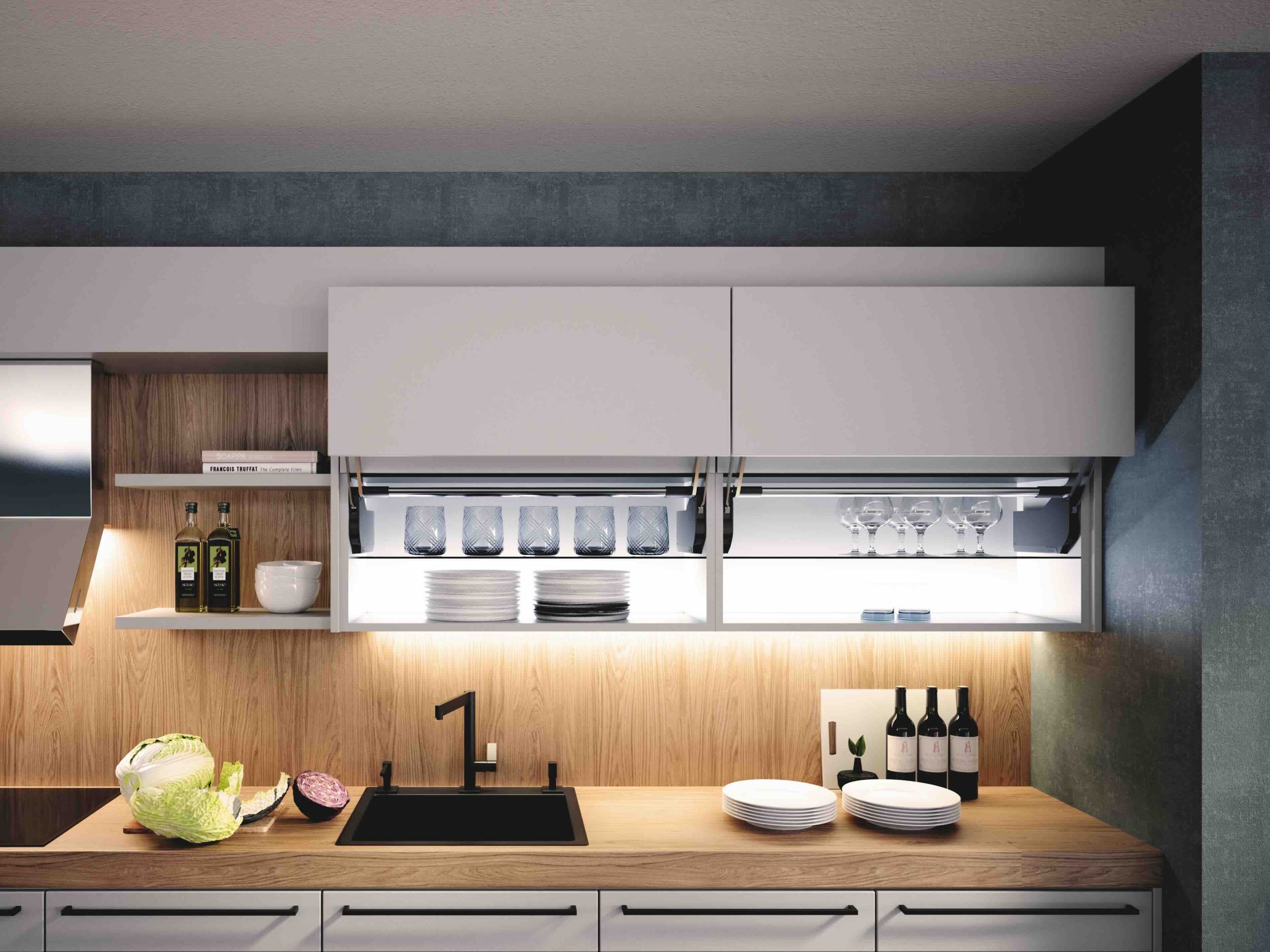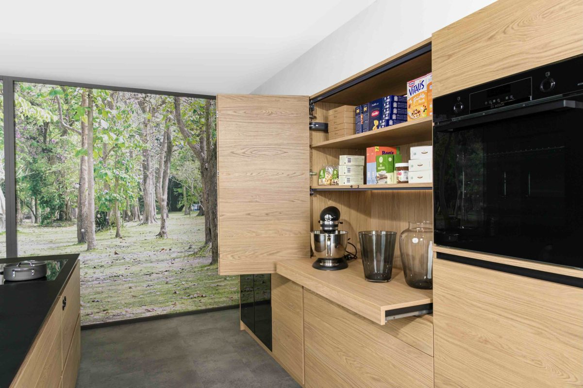 Küche Tablarauszug und Aufsatzfaltürschrank